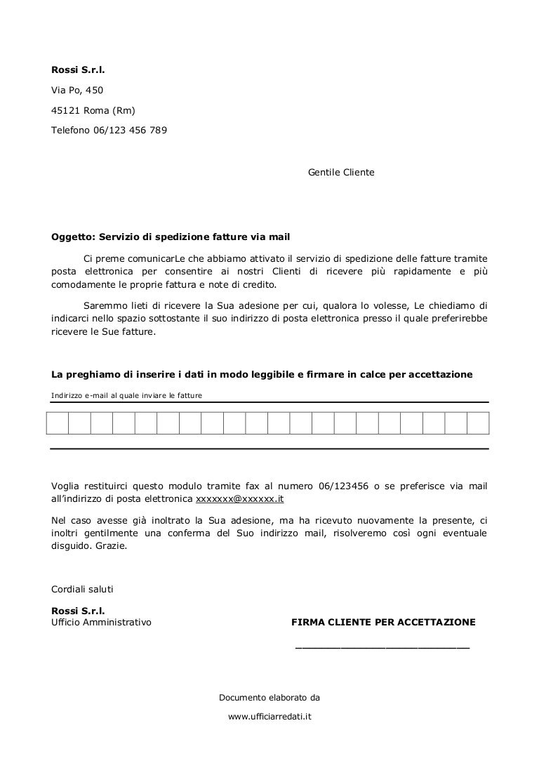 Fac simile lettera per respingere fattura