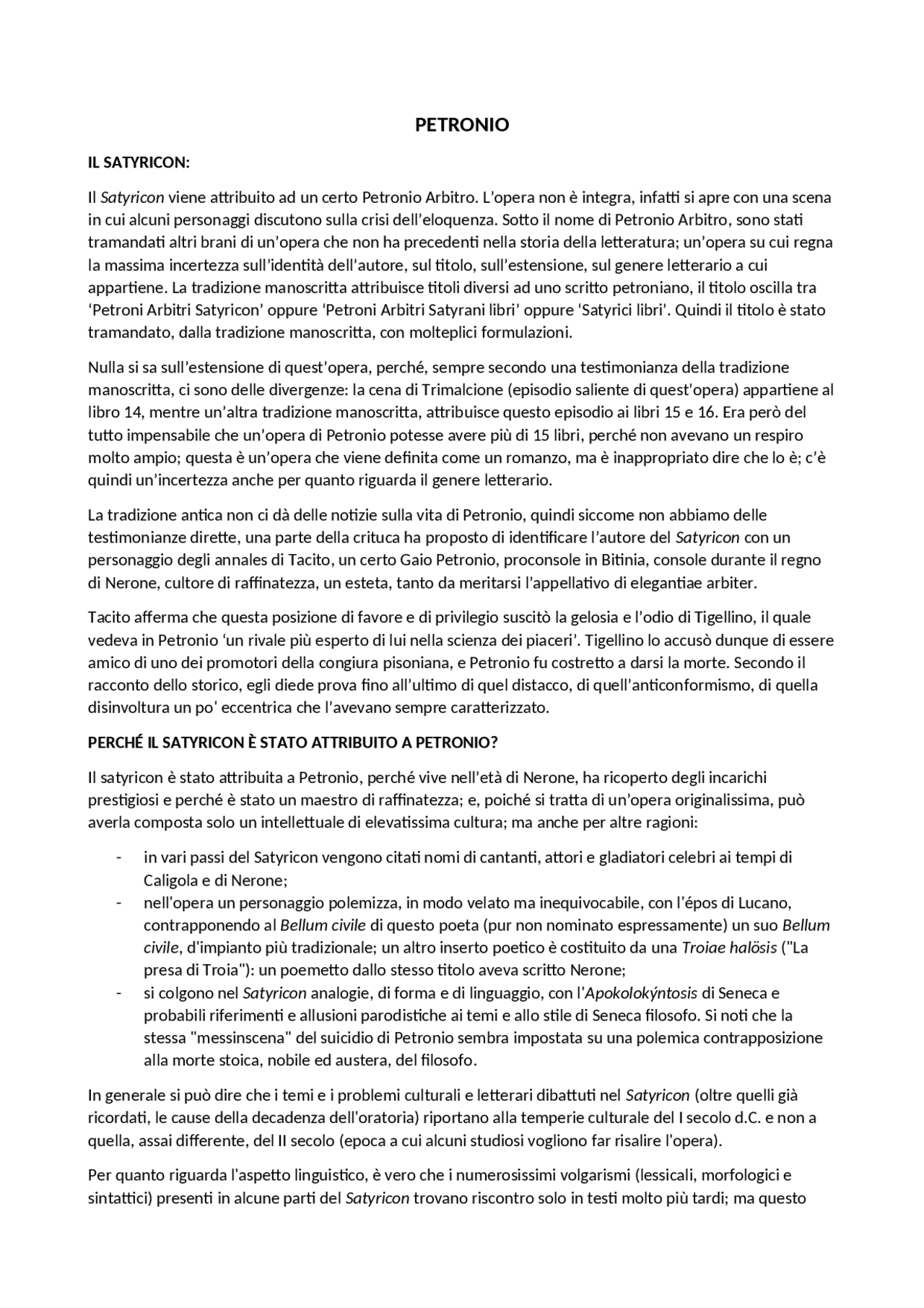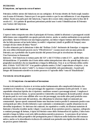 Petronio - Riassunto - PETRONIO L'unico ritratto Tacito ... - StuDocu PETRONIO. L'unico ritratto Tacito nelle sue opere tratteggia Gaio Petronio Arbitro, cortigiano di Nerone, nobile romano, definito arbiter elegantiae/elegantiarum, era noto per la sua raffinatezza e per la sua profonda doctrina, per il suo gusto nelle arti, dalla letteratura alla pittura e scultura;