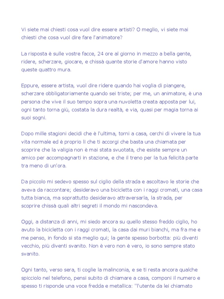 Lettera di un animatore