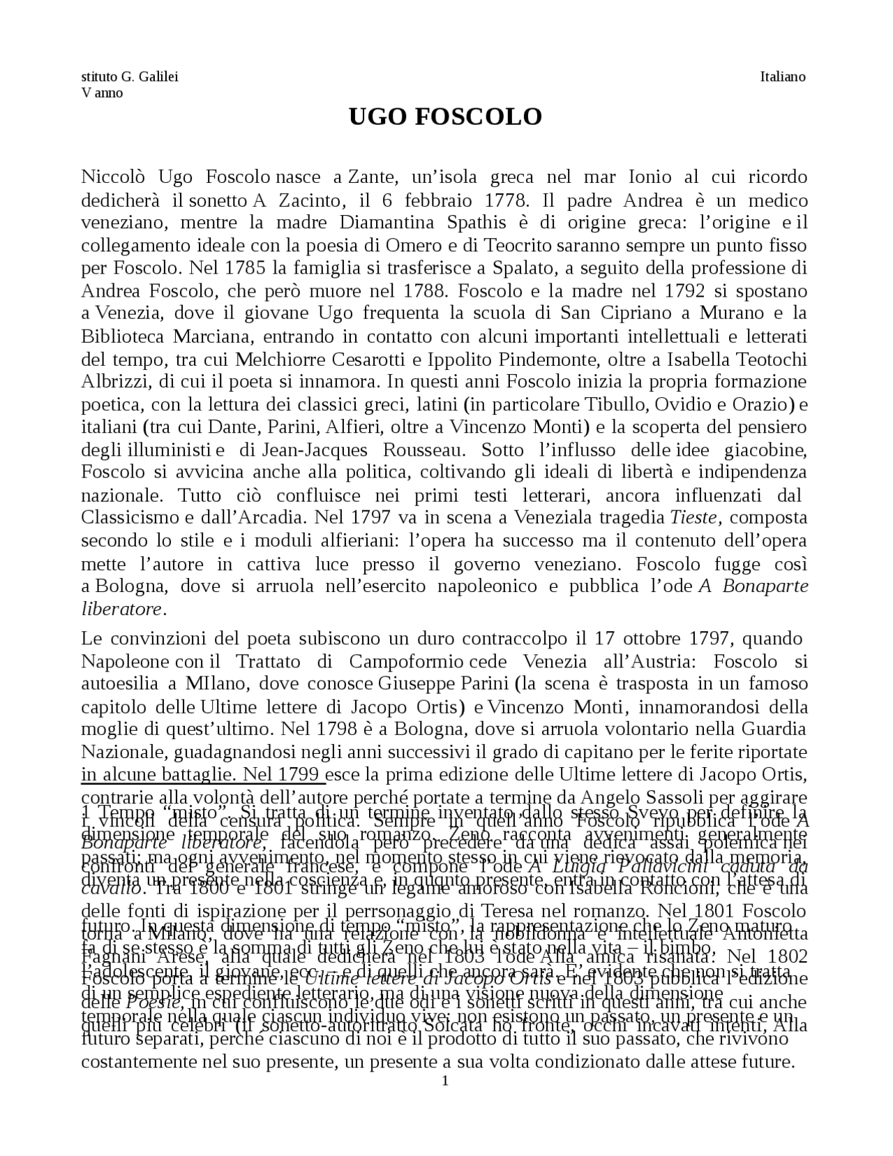 it.wikipedia.org › wiki › Ugo_FoscoloUgo Foscolo - Wikipedia Anni di formazione a Zante (1778-1792) La casa veneziana di Foscolo. Trascorse parte della sua fanciullezza nella Dalmazia e nel 1785 si trasferì con la famiglia a Spalato, dove il padre esercitava la sua professione di medico con un salario modesto, e presso il Seminario arcivescovile di quella città compì come esterno i suoi primi studi, seguito da monsignor Francesco Gianuizzi fino a ...